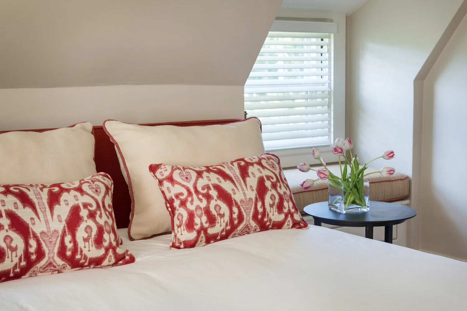 In some cases, there's simply no room for a headboard thanks to the room's architecture. As you can see by this room and all the others on this list, leaving out a headboard doesn't have to make the room feel incomplete--it can feel quite natural when the bed is intentionally placed in the room's architecture and with pillows as accents.